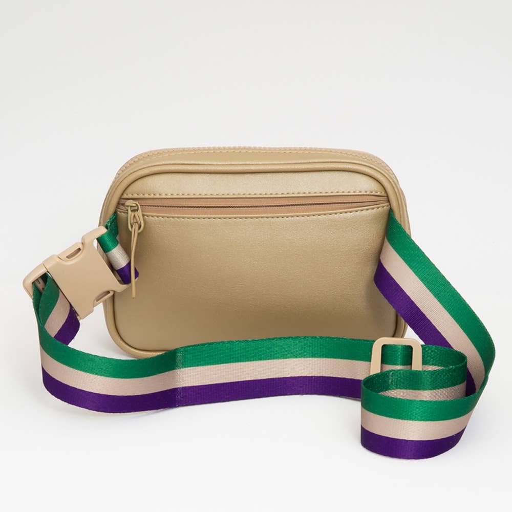 Faux Leather Mardi Gras Sparkle Front Rectangle Belt Bag